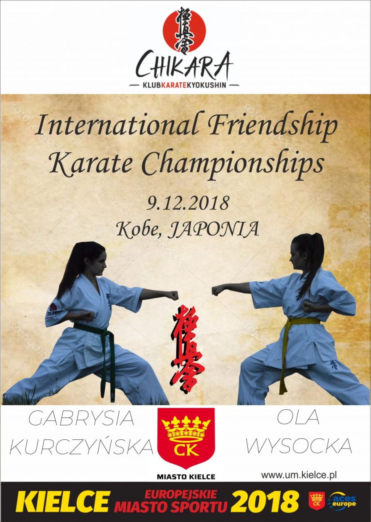 Już 9 grudnia 2018 r zawodnicy naszego klubu wystartują w międzynarodowym turnieju International Friendship Karate Championships organizowany w Kobe, w Japonii. W zawodach weźmie udział Gabriela Kurczyńska, Aleksandra Wysocka i Ernest Miszczyk.